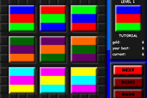 鼠标点击进行游戏,根据右上所给的图形将所给的图块改变颜色。