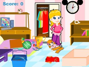 邋遢女仔总是把房间整得一团糟,妈妈就要回家了,这个样子肯定会挨骂,快速的收拾好房间吧。本游戏英文原名:Clean Up Time