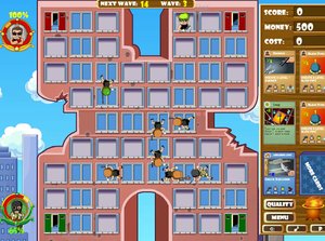 一伙持枪匪徒与特警在摩天大楼上展开了生死对抗,双方激烈交火,战况难以控制,已经演变成一场生死角逐,到底谁才能真正占领摩天楼呢?这是一个另类的塔防游戏,你可以选择当匪徒或者特警,然后用卡片召唤出己方阵营的战士加入战斗,直到把敌方的大本营攻破!当你抽到升级卡的时候,你只要把卡片拖到战士身上就可以给他升级了。