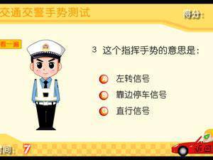 左键鼠标操作鼠标左键点击选择正确答案。可以先预览学习交警手势知识后,再进入答题测试