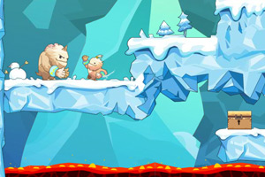 玩家1:键盘AD键移动,W键投掷小雪怪/爬平台/放梯子/上楼梯,S键下楼梯。 玩家2:方向键←→移动,↑键放梯子/上楼梯,↓键使用铲子/下楼梯。 提示:大雪怪按AA/DD可冲刺撞碎冰柱,获得拳击手套后冲刺可以消灭敌人。点击右上方的圆形箭头重玩。