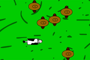 小奶牛在草地上独自静静的吃着嫩草,忽然一群疯狂的不明生物向它狂奔过来,赶快来帮助奶牛小心的躲避这群不明生物吧!