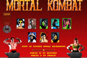 方向键↑↓←→选择真人快打人物,S键砸铁块,W键激活滚动条。将滚动条上的小球停在中间即可胜利。
