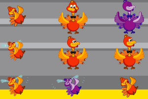 鼠标操作,鼠标拖拽移动大小火鸡的位置,当一个同品种的小火鸡放在大火鸡上时,小火鸡就会被拯救。