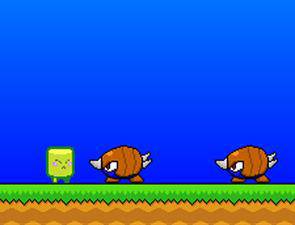游戏中你要控制小小的绿方块移动,将长的很难看的那几个小怪物全部干掉,踩死它们吧!
