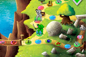 鼠标操作。此款小游戏刚开始类似于大富翁,点击第3个按钮“Begin new quest”开始游戏,你可以选择2人模式、3人模式和4人模式,当选择好后按“Create a new gladiator”开始选择你喜欢的形象以及合适的对手,选择完毕后点右下角的√后点击桌面开始游戏。在左上角点击筛子后开始你的旅程。每走出一步所代表的东西也不相同,蓝色圆饼代表增加金币,红色圆饼代表减少金币,绿色上面有小方框的代表要开始冒险,红色的怪物头像代表要对战怪物,后面还有几种在游戏中慢慢体会吧~
