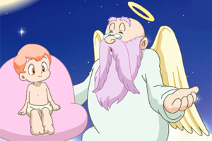 上帝的工作是给婴儿们分配男女,男孩就是蓝色心,女孩就是红色心,上帝的工作所以简单,但是反应要快,不然等婴儿下凡尘之后就不会分配了。