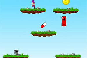 移动/跳跃 鼠标移动控制红色果冻的移动,点击进行跳跃,每一次跳跃会消耗能量,能量消耗完后,可点击SHOP进入商店升级或者购买各种道具哦。