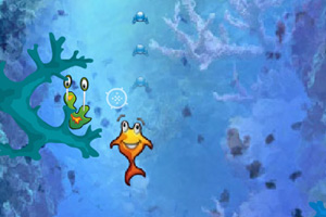 晃动鼠标控制小鱼移动,鼠标左键控制小鱼射击