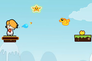 鼠标移动控制瞄准,按住鼠标左键蓄力,松开射击。射中平台上的小花和星星。