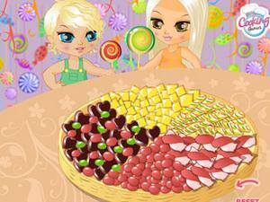 两个小伙伴都很喜欢吃糖果呢!她们今天要请其他朋友来做客呢!快点来帮助她们好好布置一下吧!