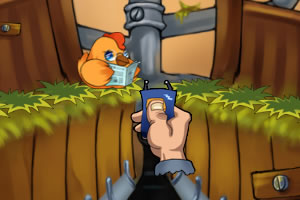 游戏中使用鼠标点击偷懒的母鸡,即可收集到鸡蛋。