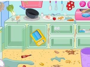 一个假期过去了,在家招待了几次同学把厨房弄得好脏呢!现在大家就来一起打扫吧!
