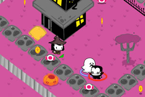 万圣节到了,小巫师带着他的小幽灵来到村子要糖吃,这是他最喜欢的节日,可是有许多狼人和吸血鬼一直来骚扰他,他必须躲开这些吸血鬼然后去收集糖果,否则过了今晚就没有糖果可以要了。