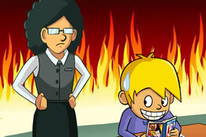 鼠标点选小男孩希望玩的游戏,来增加快乐度。注意老妈和老师会每隔几秒钟来“监视”一眼(时间固定),估计她们来之前一定要松开鼠标回到写作业状态。