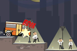 游戏中使用鼠标操作,点击车辆行驶或停止把站立的人都撞倒。