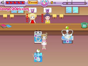 可爱的小女孩自己开了家洗衣店噢,因为她甜美的外表和周到的服务,小小洗衣店客似云来呢,我们帮帮忙吧。