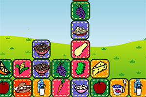 左右移动 键盘方向键←→移动食物,三个底色相同的食物连在一起即可消除。